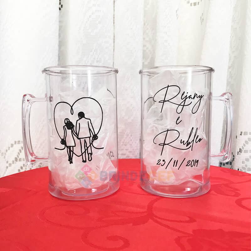 As canecas de acrílico tem uma ótima relação de custo e benefício. A sua grande vantagem é que é um copo que servem bem qualquer bebida, inclusive a cervejinha que nunca falta na maioria das festas.