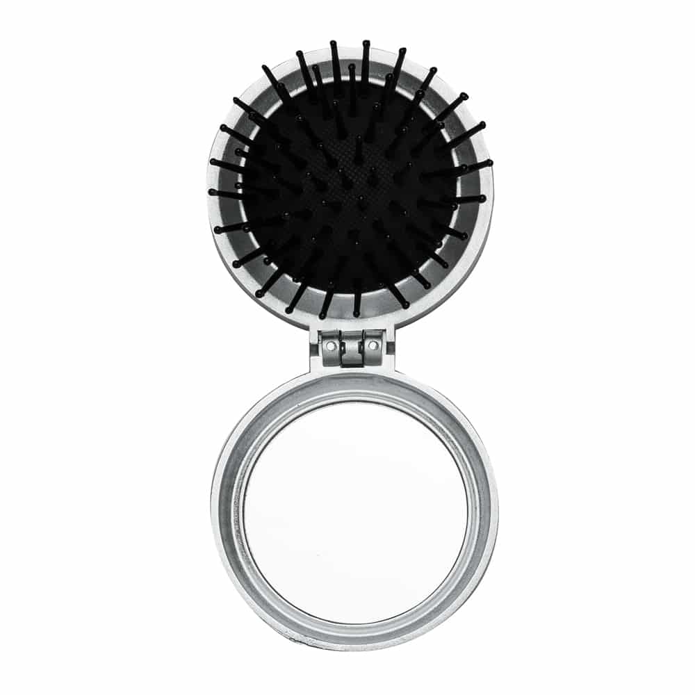 Compacto e leve, este espelhinho com escova é perfeito para levar na bolsa, necessaire